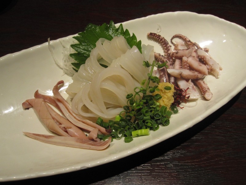 真ん中の刺身もうまいが、ゲソが意外にプリっとしていてうまかった。