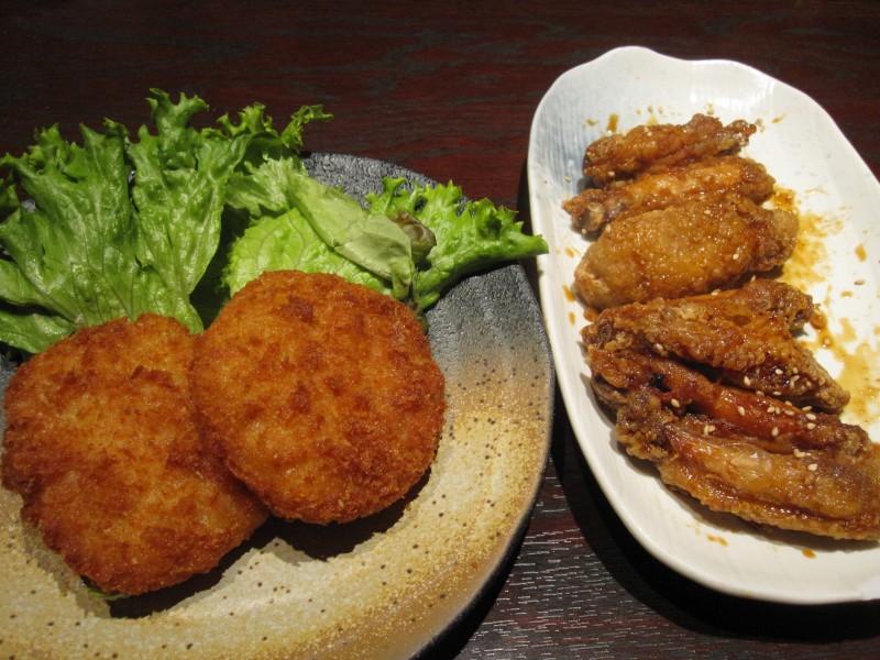 ↑チーズコロッケと、手羽唐揚げ。