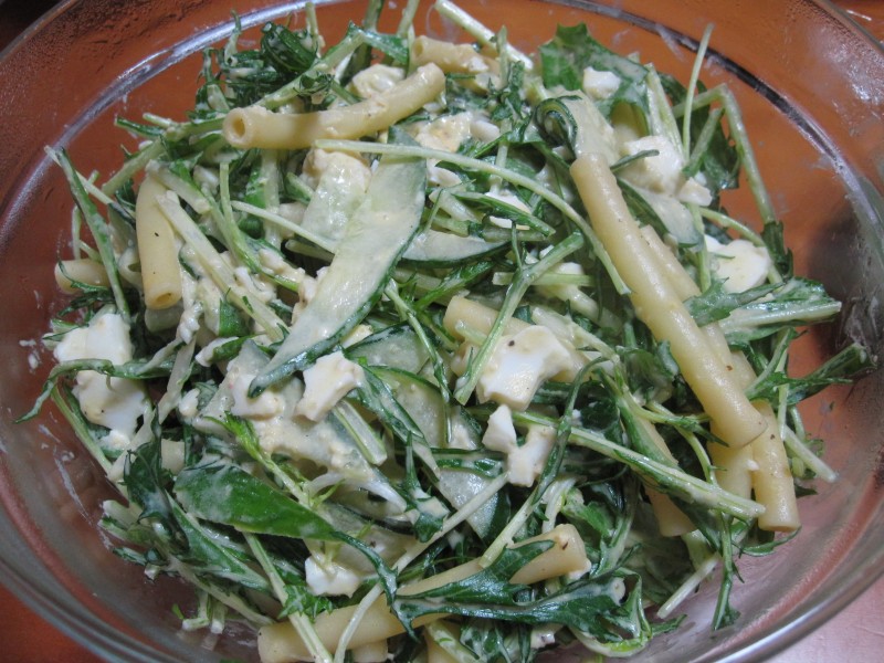 ↑マカロニ水菜キュウリゆでたまごマヨサラダ。