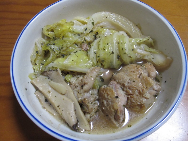 ↑キャベツ・エリンギ・鶏肉の洋風煮物。