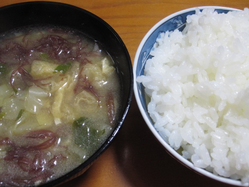 ↑夜ご飯。味噌汁・ご飯。