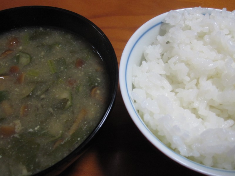 味噌汁の具は、なめこ・オクラ・かぶの葉。