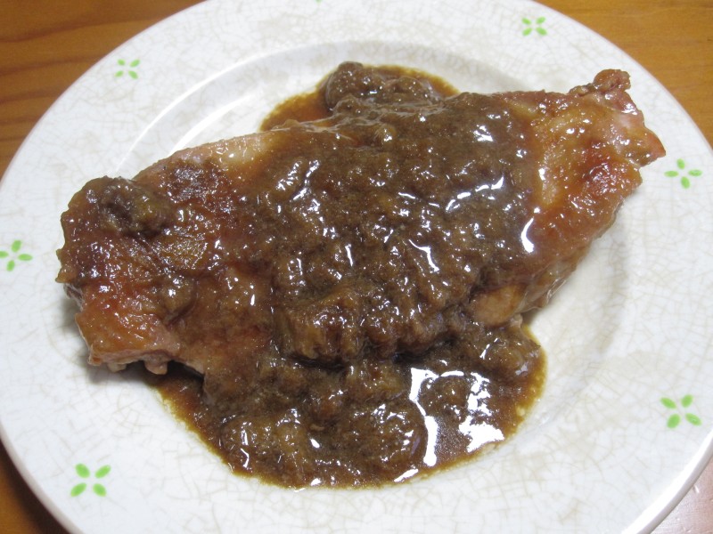 ↑"鶏肉を焼いたの"昨日のソースがけ。だって。