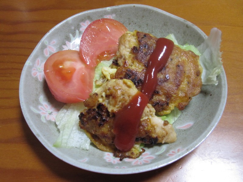 ↑鶏ささみピカタ。レタス&トマト。