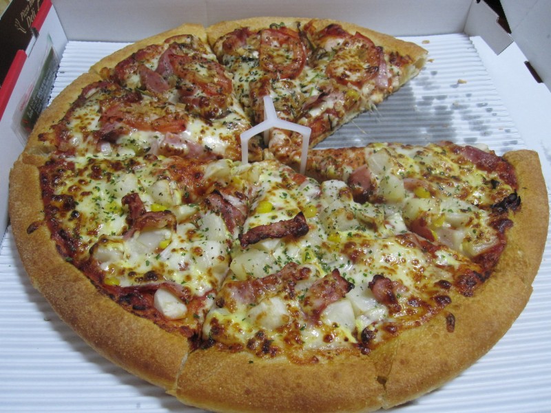 ↑ピザ。下に1切れあげたそうで、パックマン状態。