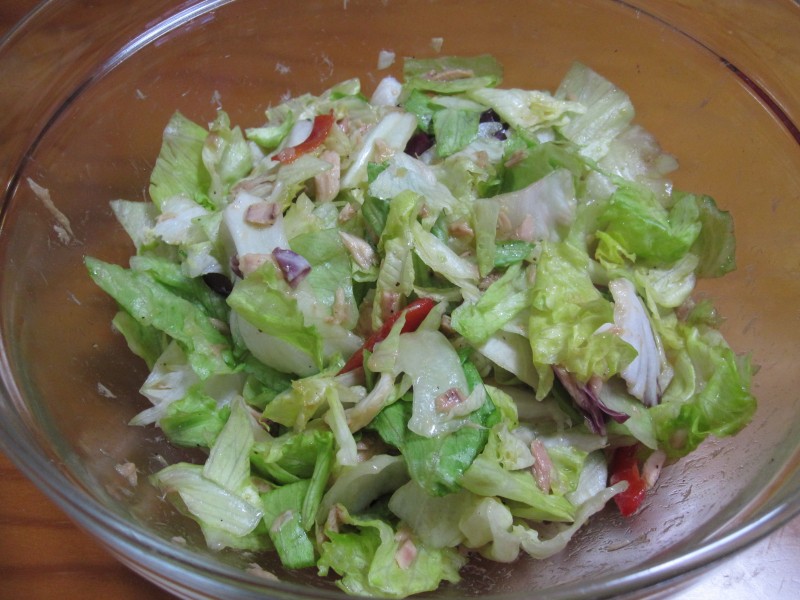 下からもらったカット野菜を使って、ツナサラダを作った。