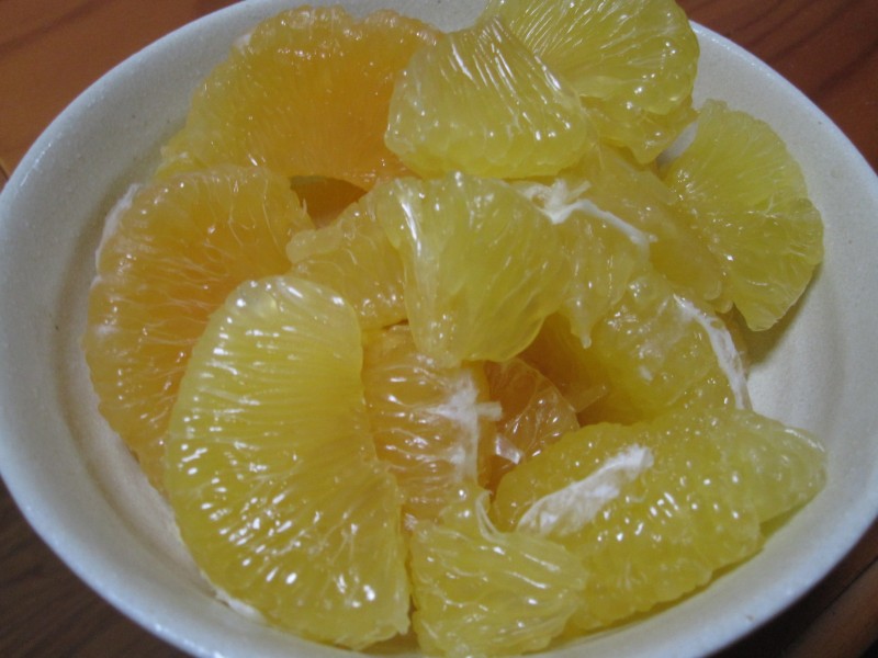 ↑デザートは、下からもらった謎のお取り寄せ柑橘類。