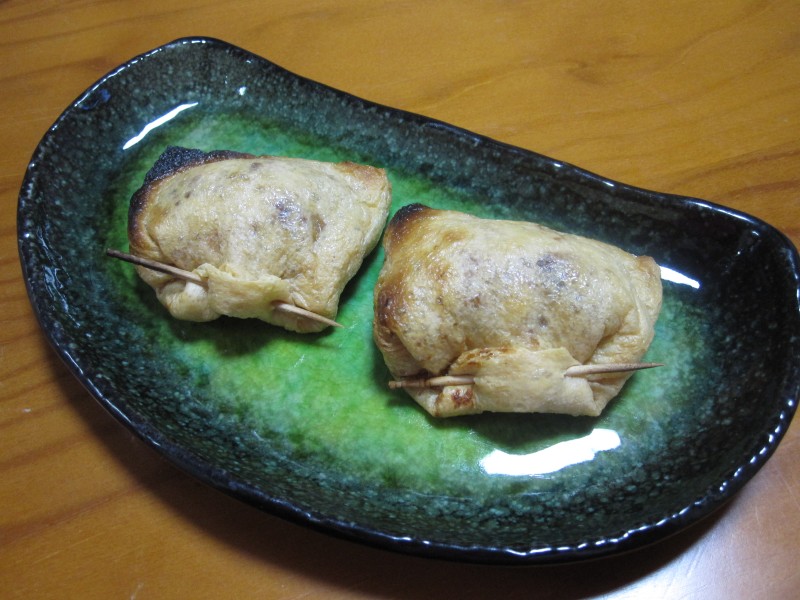 ↑納豆詰め油揚げ焼き。