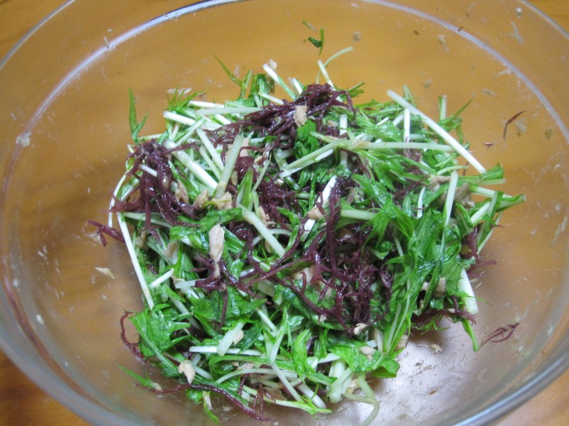↑ふのり・水菜・ツナのサラダ。