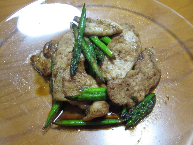 ↑アスパラと豚肉の炒め物。