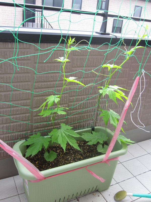 順調ねー。編み目が葉っぱで埋まるほど茂ってほしいなぁ。