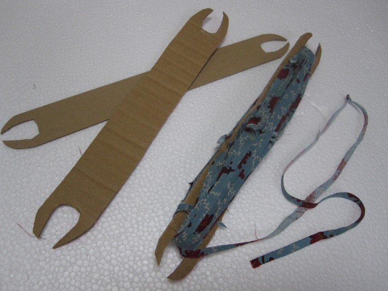 ↑シャトルっぽいものも段ボールで適当に作って、裂き布を巻いて。