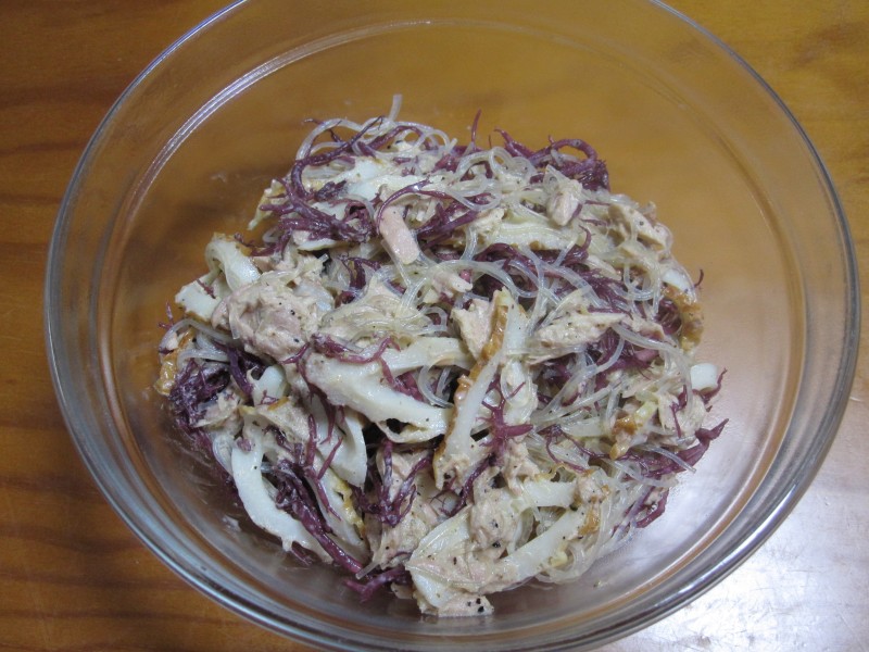 ↑夜ご飯。春雨・ふのり・ちくわ・ツナのサラダ。