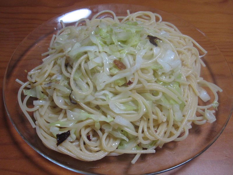 ↑夫の人が作ったパスタ。キャベツペペロンチーノ。