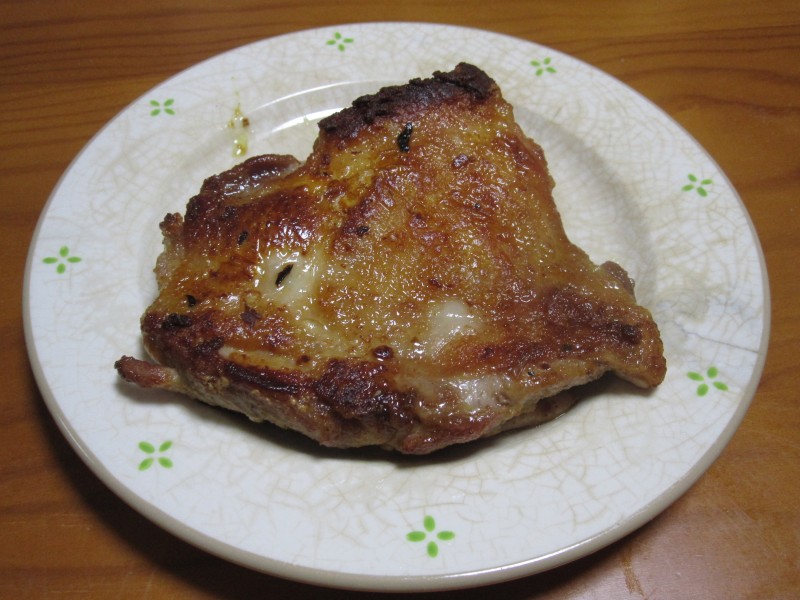 ↑夫の人が焼いた、鶏肉。皮パリパリ~。