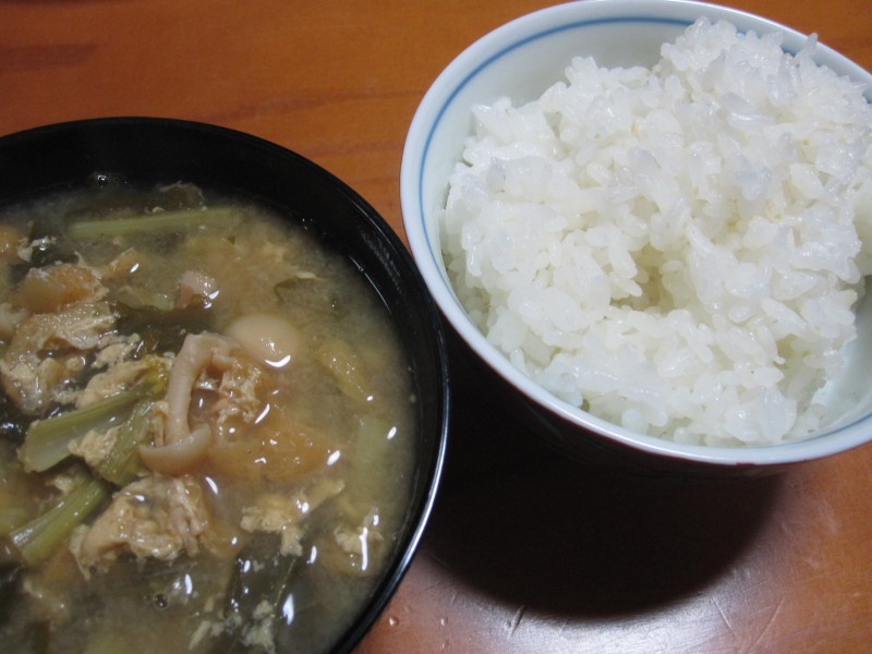 ↑夜ご飯。味噌汁・ご飯。
