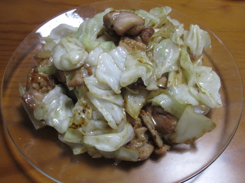 ↑キャベツと鶏肉の炒め物。しょうがをきかせて。うまうま。