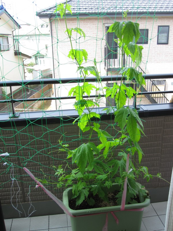 「グリーンカーテン」っぽくなるかな~。今はまだスカスカだけど。