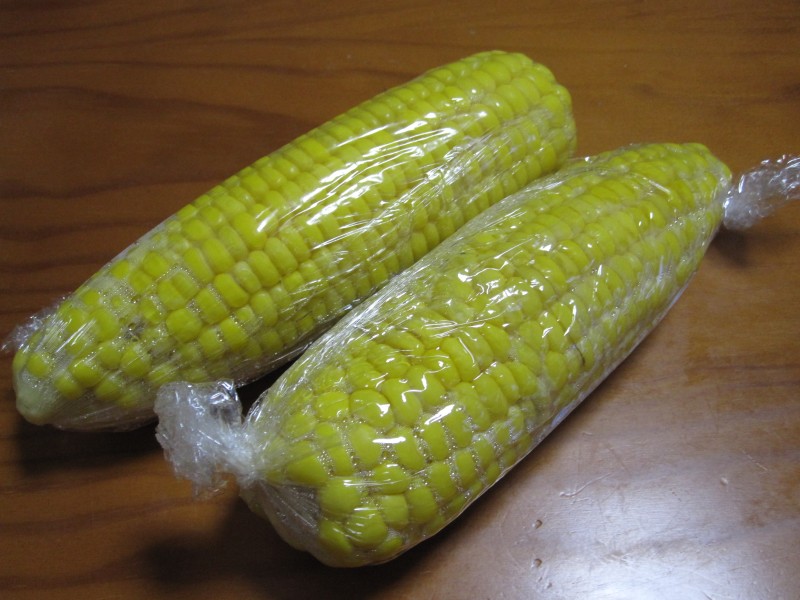 ↑ゆでとうもろこし。道の駅で買ったとうもろこしをゆでて。