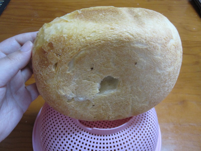 ↑裏側には、謎の穴。生地を混ぜる羽が差さっていた痕らしい。