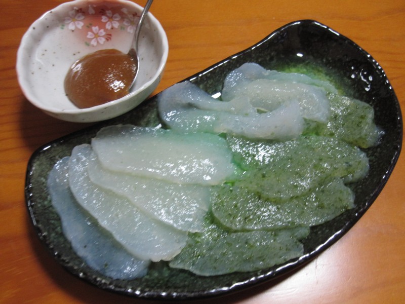 ↑下からもらった刺身こんにゃく&酢味噌。プレーン&青海苔。