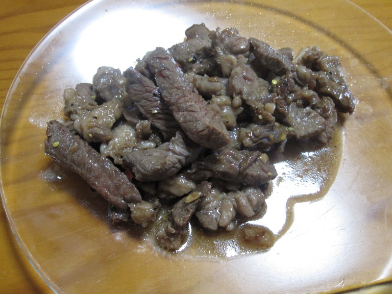 ↑夫の人が焼いた牛肉。うまいがだいぶ辛かった。