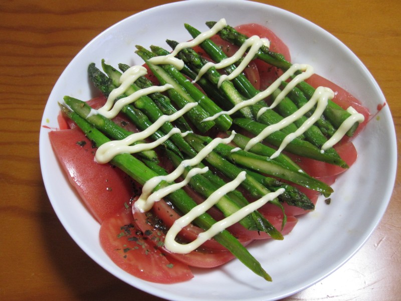 ↑トマト&アスパラのサラダ。