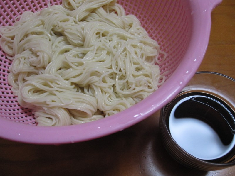 ↑朝ご飯。夫の人がゆでてくれた、そうめん。