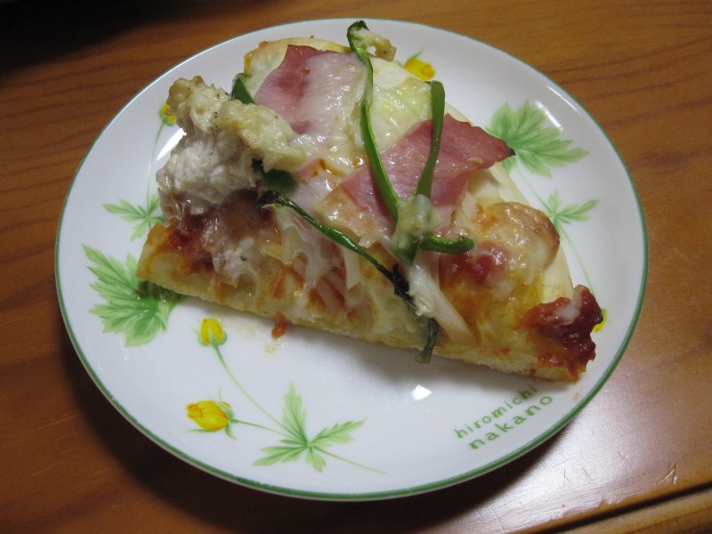 ↑夜ご飯。夫の人が作ってくれた、ピザ。