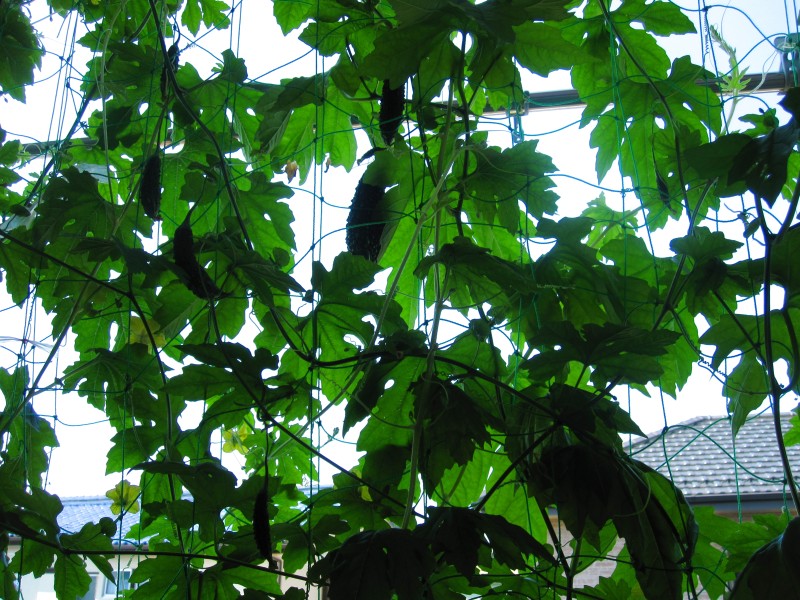 ↑今朝のゴーヤちゃんたち。逆光でわかりにくいけど。