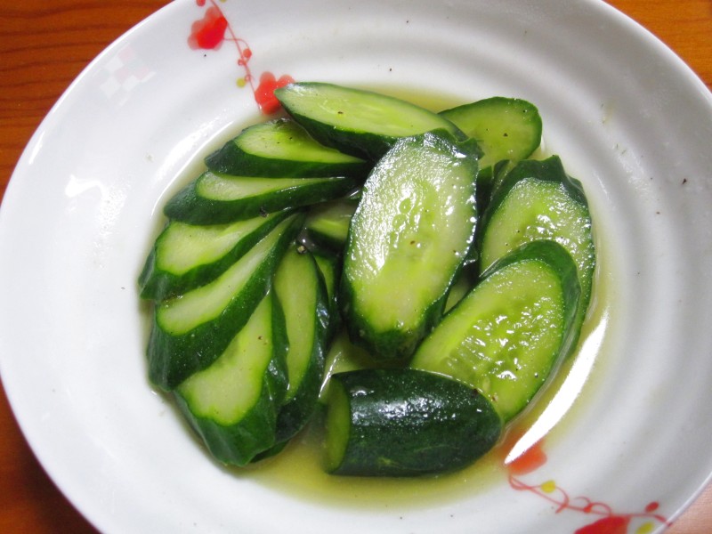 ↑朝ご飯。キュウリ浅漬け。残りもの。