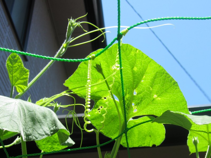 さかんにつるを伸ばして、いつのまにか見上げるくらい育っていた。