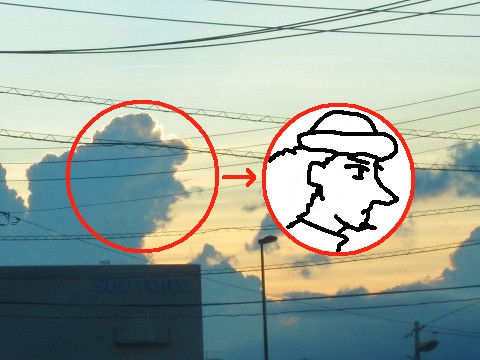 夫の人に「横顔みたいな雲ー」って見せたら、わかってもらえなかった。