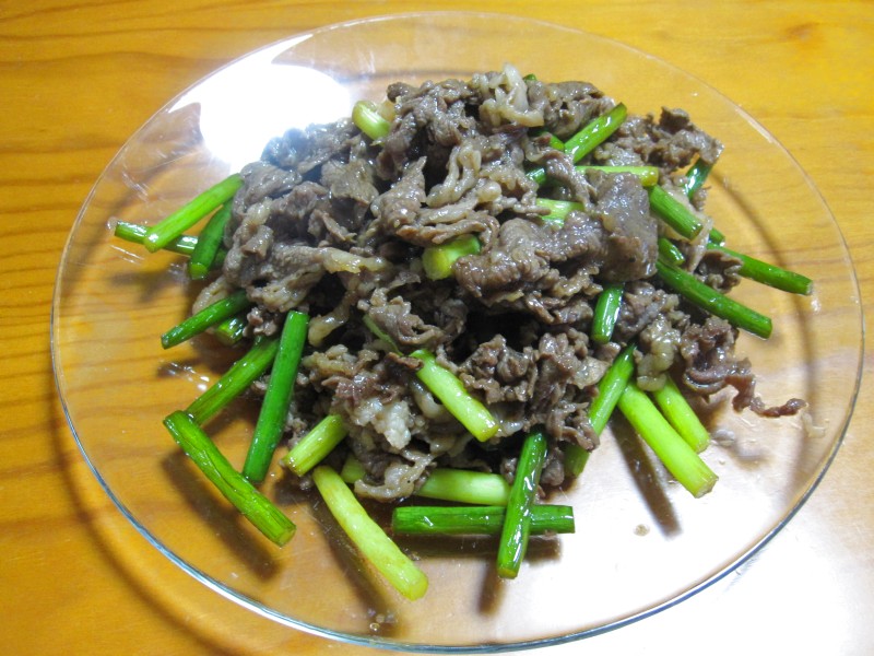 ↑にんにくの芽と牛肉の炒め物。元気でそう。