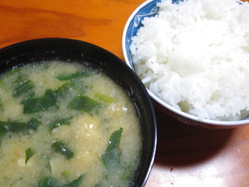 夫の人が作るご飯なのに、味噌汁があるなんて珍しい。