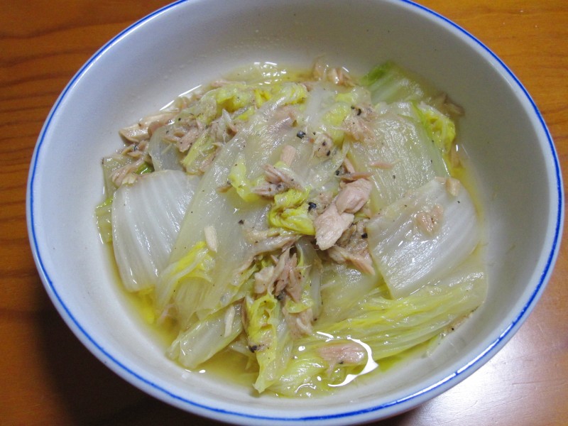 ↑白菜とツナの炒め煮。冷蔵庫で少し冷やした。