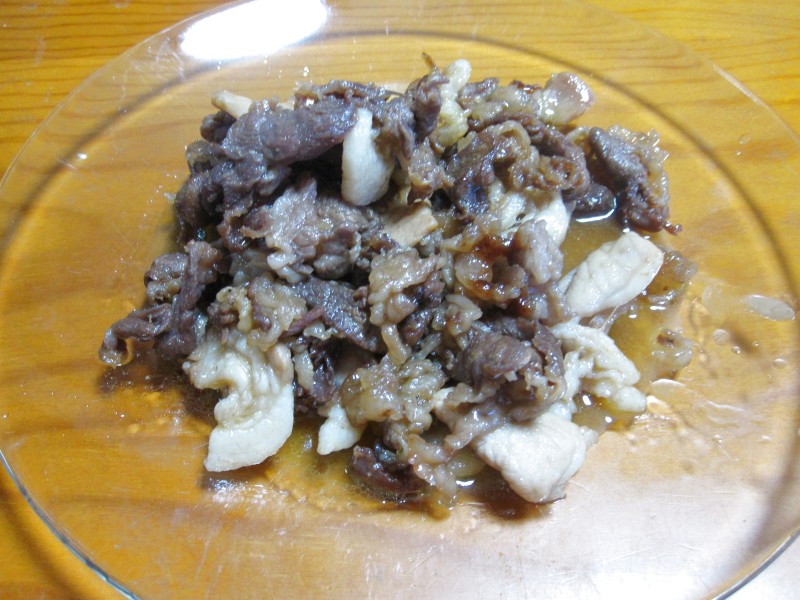 ↑牛肉と豚肉の炒め物。甘めの味付け。うまうま。