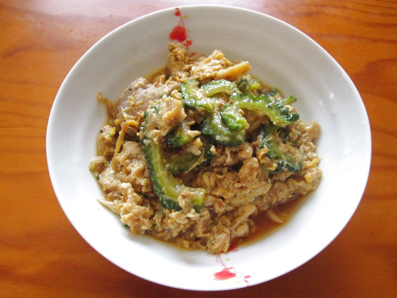 食べきれなかったゴーヤチャンプルーを荒く刻んで入れてみた。