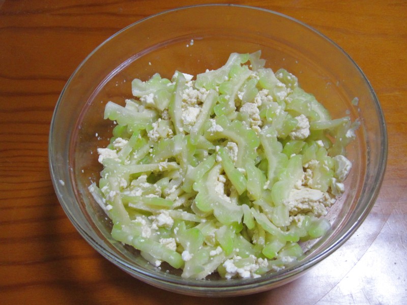 ↑ゴーヤと豆腐のサラダ。夫の人が作ってくれた。