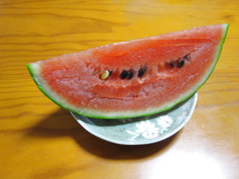 ↑下からもらったスイカ。うまうま。今年のスイカは甘いのか?