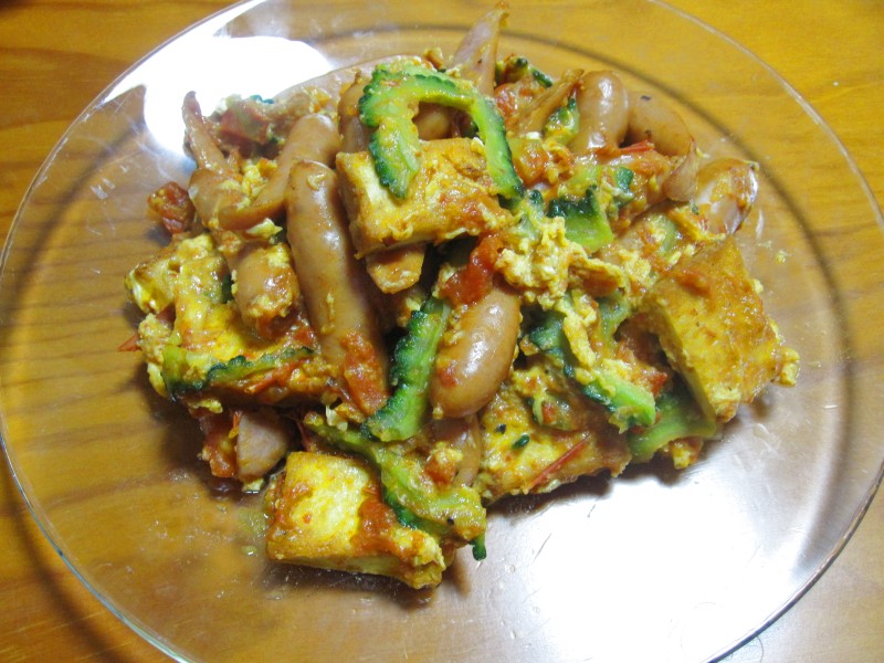 ↑ゴーヤチャンプルー的な、トマトソース炒め。