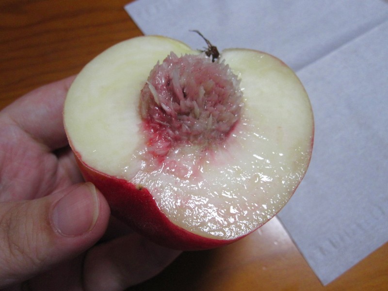 夫の人が半分にモリっと割って、タネ付きの方をくれた~。