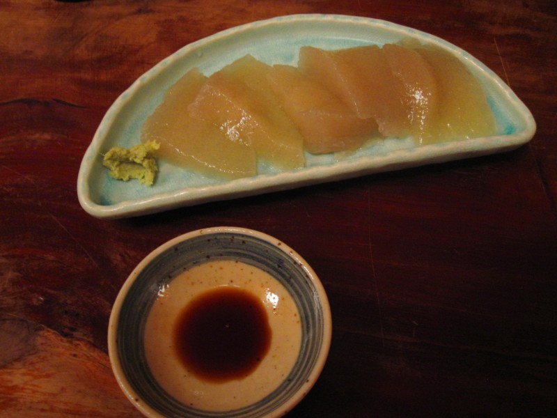 ↑刺身こんにゃく。うまうま。厚切りで、歯ごたえを楽しむ感じ。