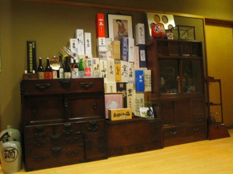 酒の空き箱が山積み。。。そばで日本酒もいいねぇ。