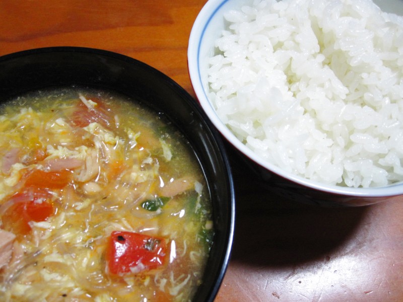 ↑夜ご飯。春雨スープ・ご飯。