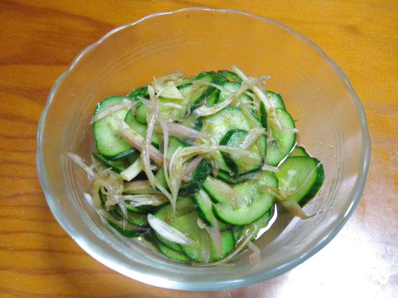 味噌汁とサラダに入れた みょうがは、夫の人の好物。