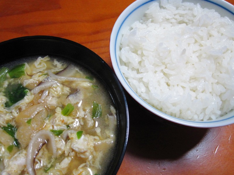 はすは「きのこ汁」と思ったし、夫の人は「玉子スープ」と言った。