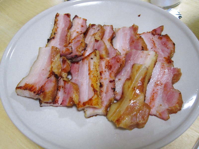 ↑ベーコン。厚切りジューシー。マスタードをつけて、うまうま。