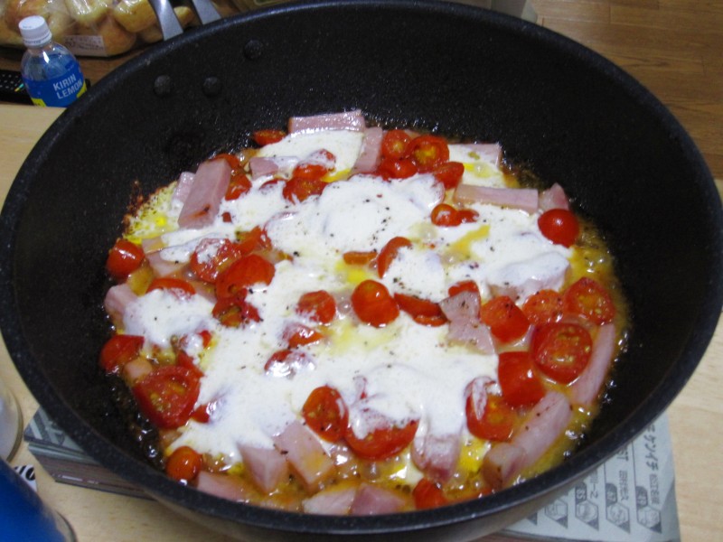 昨日BBQだったそうで、食材の残りで何か作ろうという流れ。