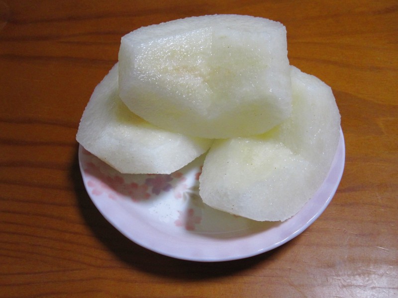揚げ物の後に食べる梨は、さっぱりしてうまいわー。